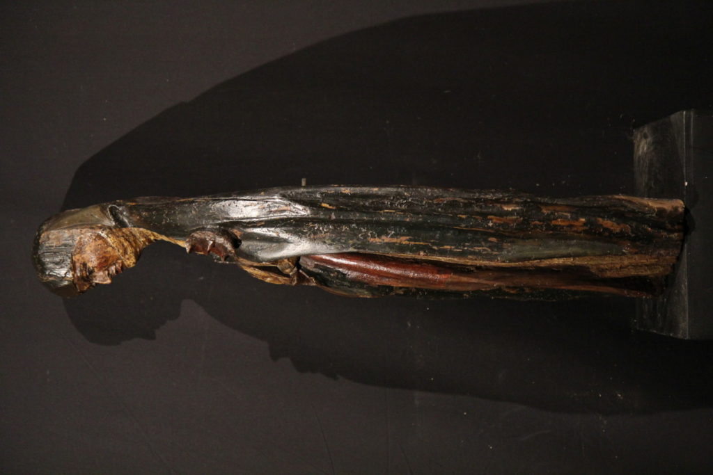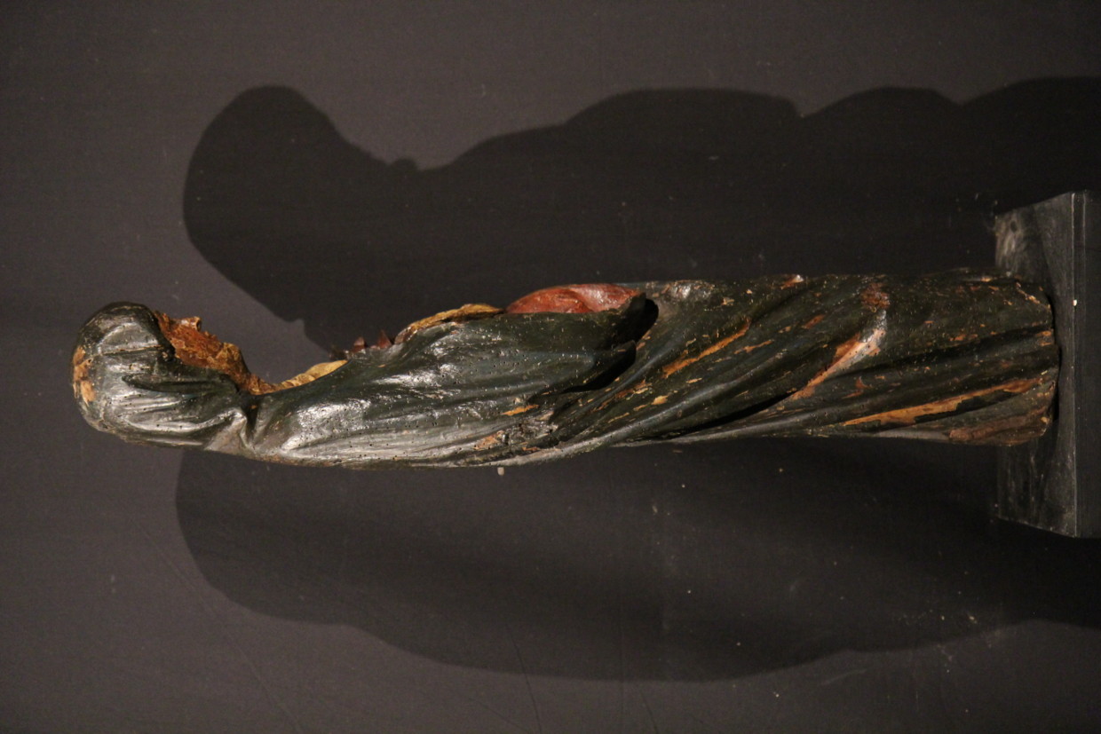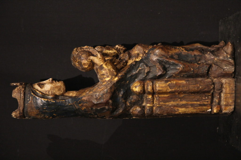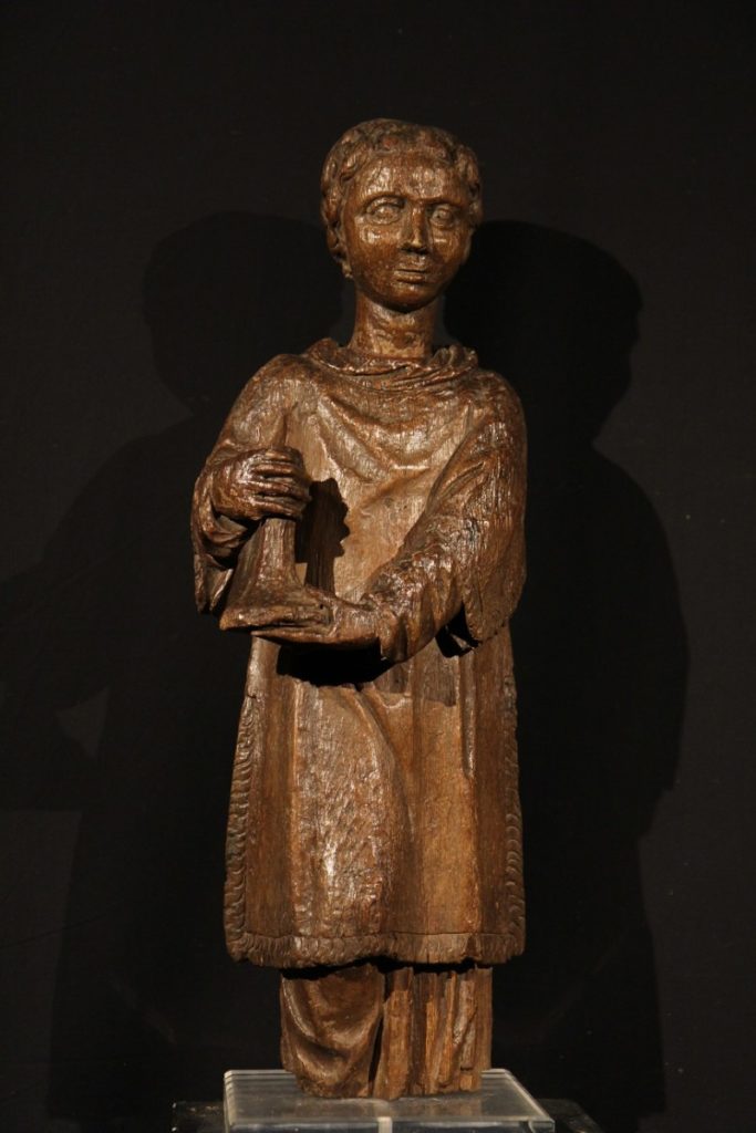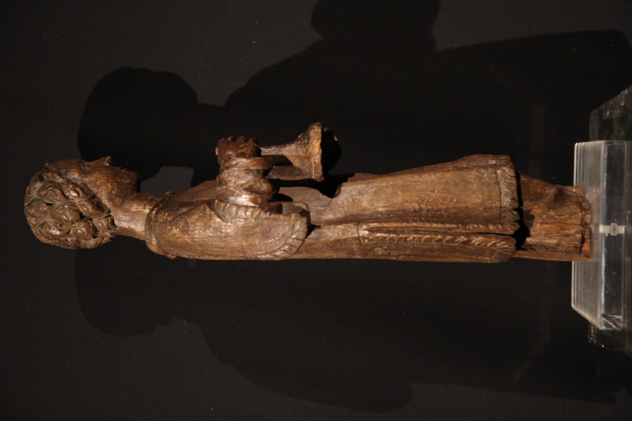St. Anthony the Hermit. Carved oak statue with traces of polychromy. Widely represented in the Middle Ages, he is considered the father of monks. His remarkable ability to resist pain and temptation led him to be attributed with healing powers. His relics, transferred to the Viennese region in 1070, helped cure the ergot poisoning, also known as St. Anthony’s fire. This led to the creation of the oldest institution of hospital order : the Antonines.