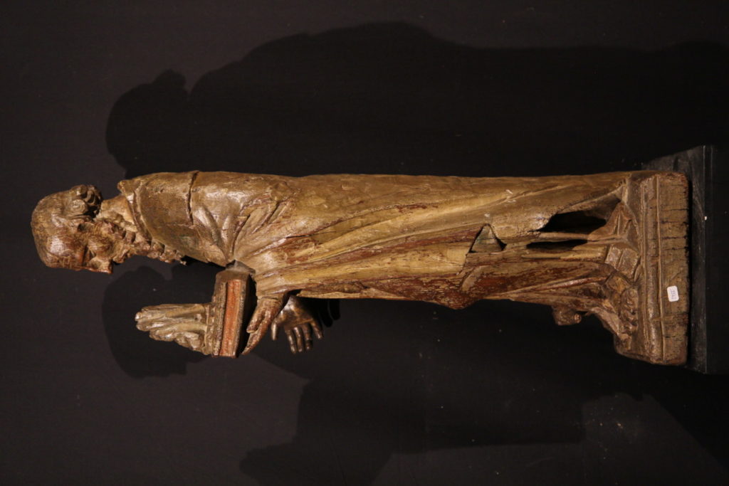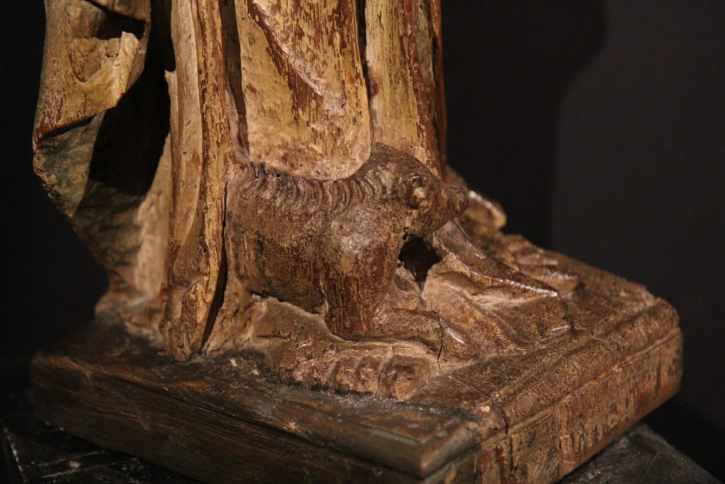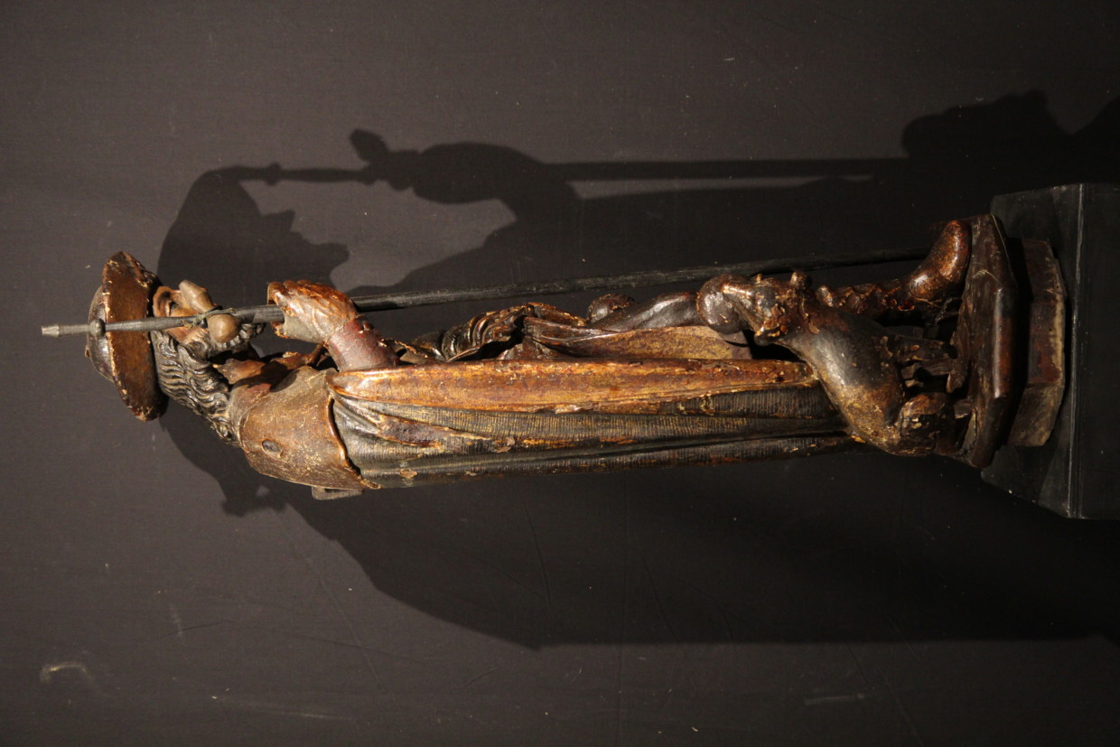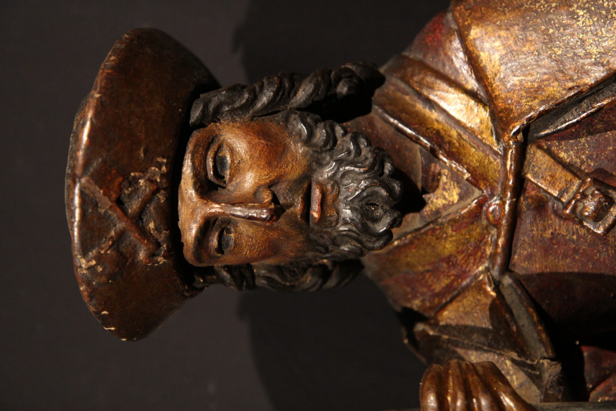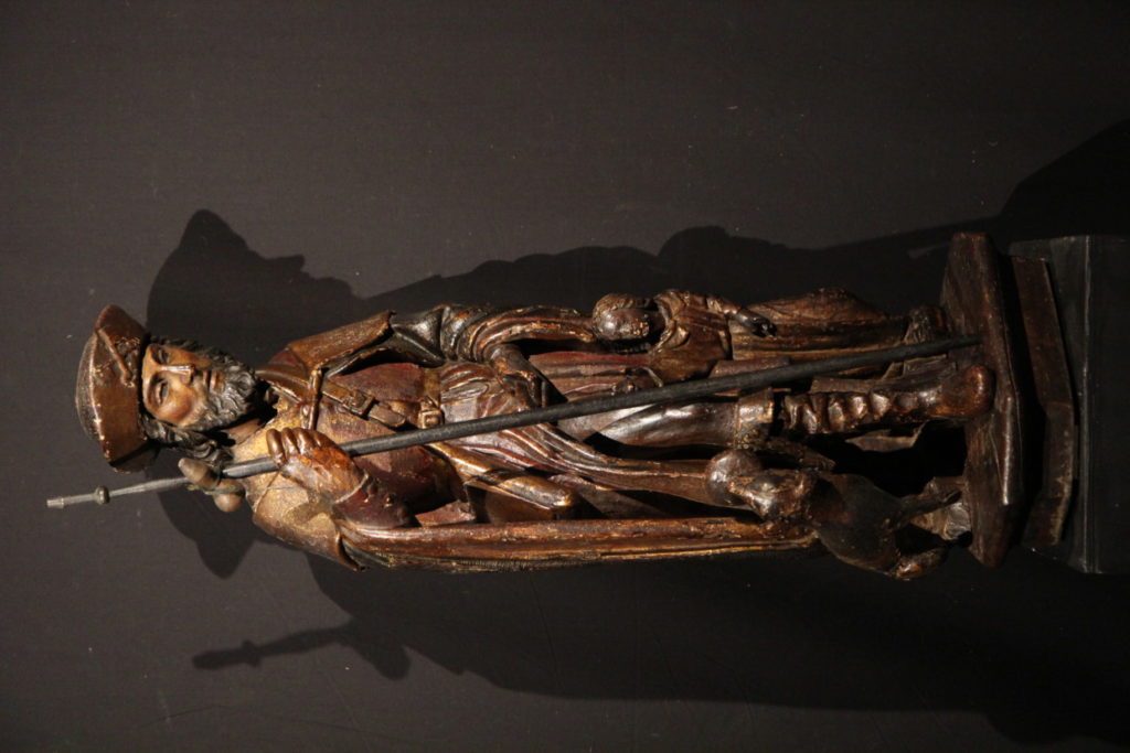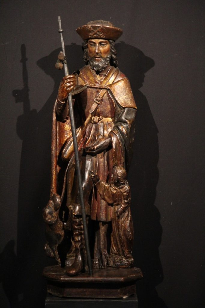 St Roch. Carved, lacquered, and gilded wooden statue circa 1600.