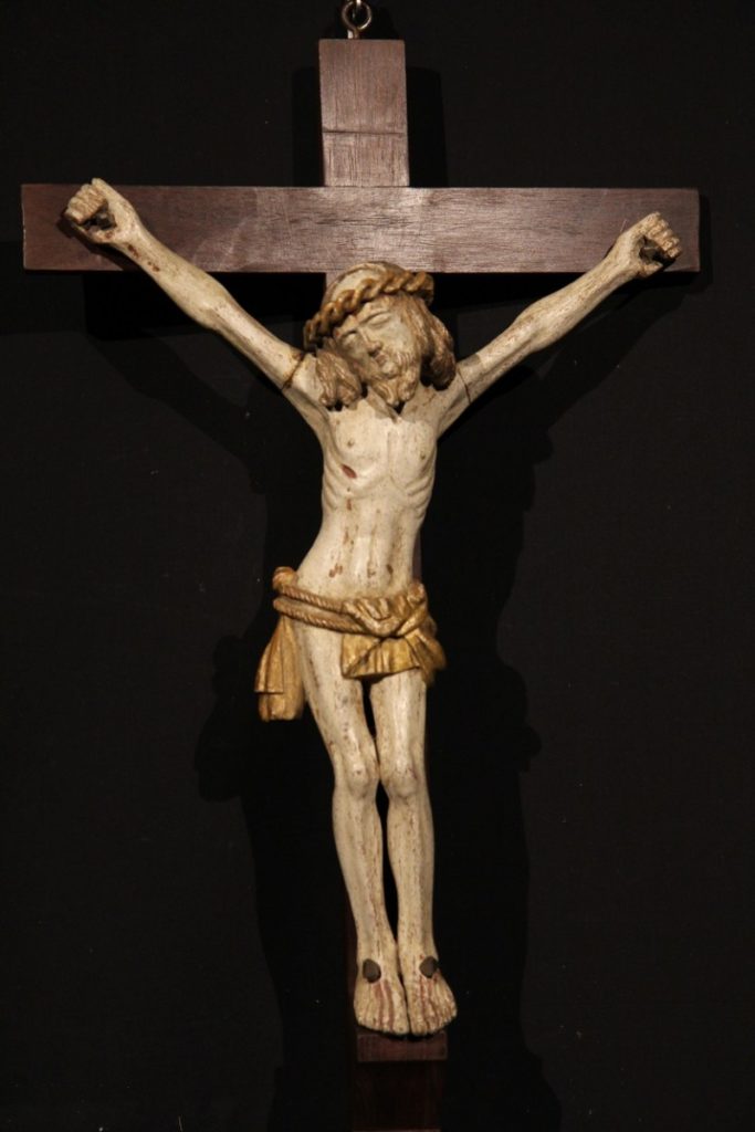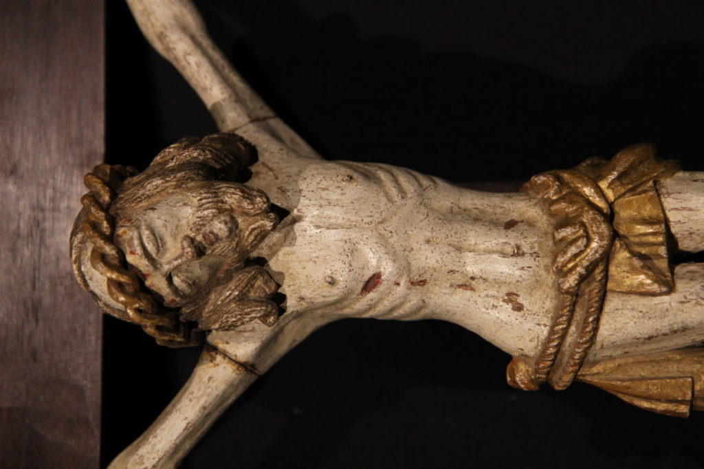 Carved, gilded, and polychrome wooden crucifix. 16th century.