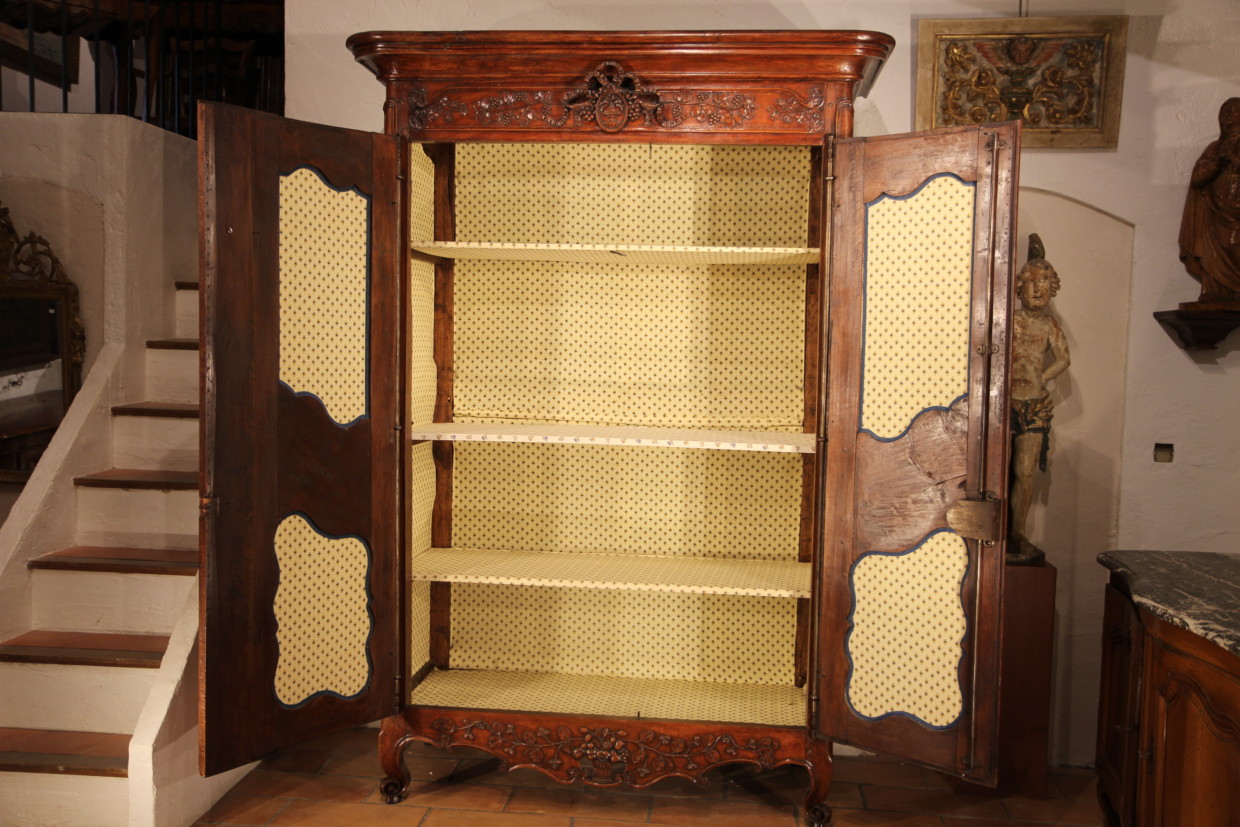 18th C Provençal wedding armoire (wardrobe). Walnut wood.