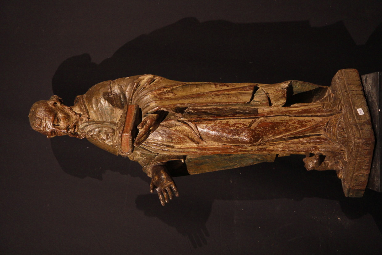 St. Anthony the Hermit. 16th C Carved oak statue with traces of polychromy.