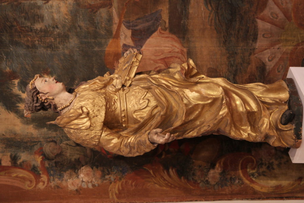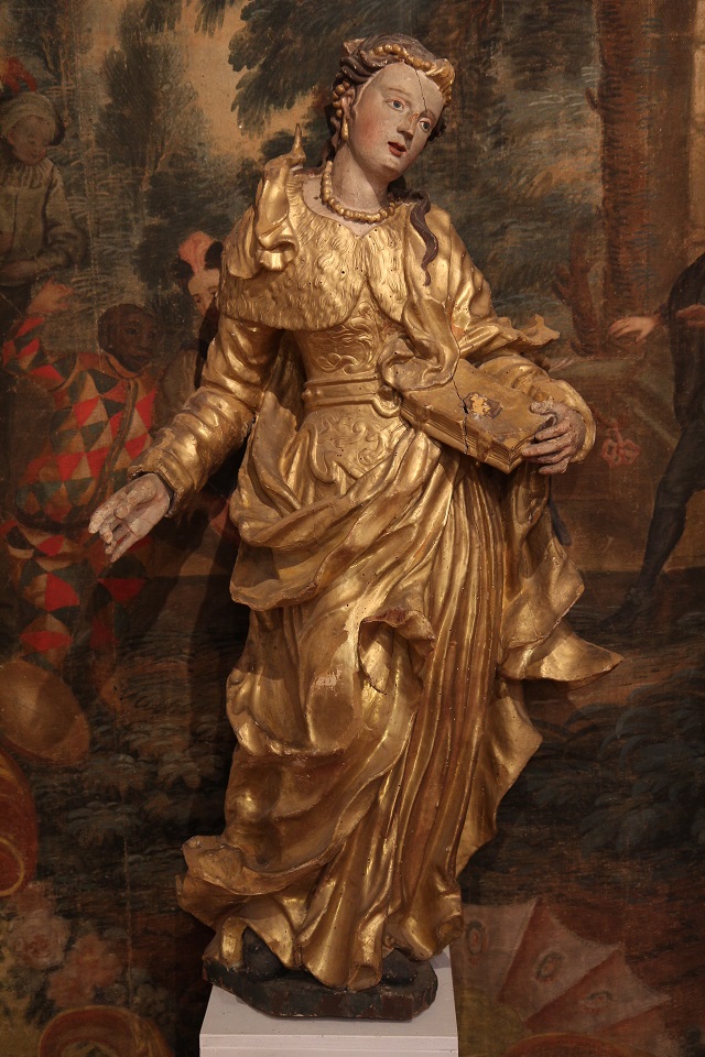 The richness of drapes as well as the beauty of faces are typical of Austrian baroque and especially of the work of Dominikus Moling (1691-1761). A pair of statues, representing Saint Barbara and Saint Gertrude carved by this sculptor at the Diocesan Museum of Bressanone, are very similar and dated 1735-1740.