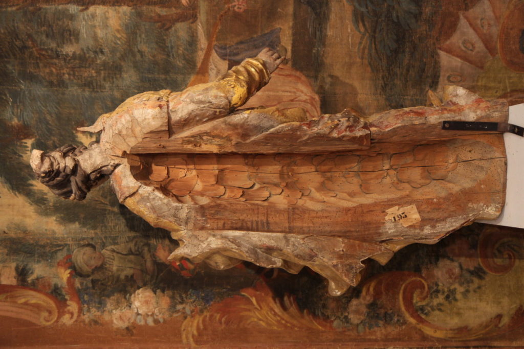 The roughness of the folds and the type of crown lead us to think of a Catalan work from late 15th century.