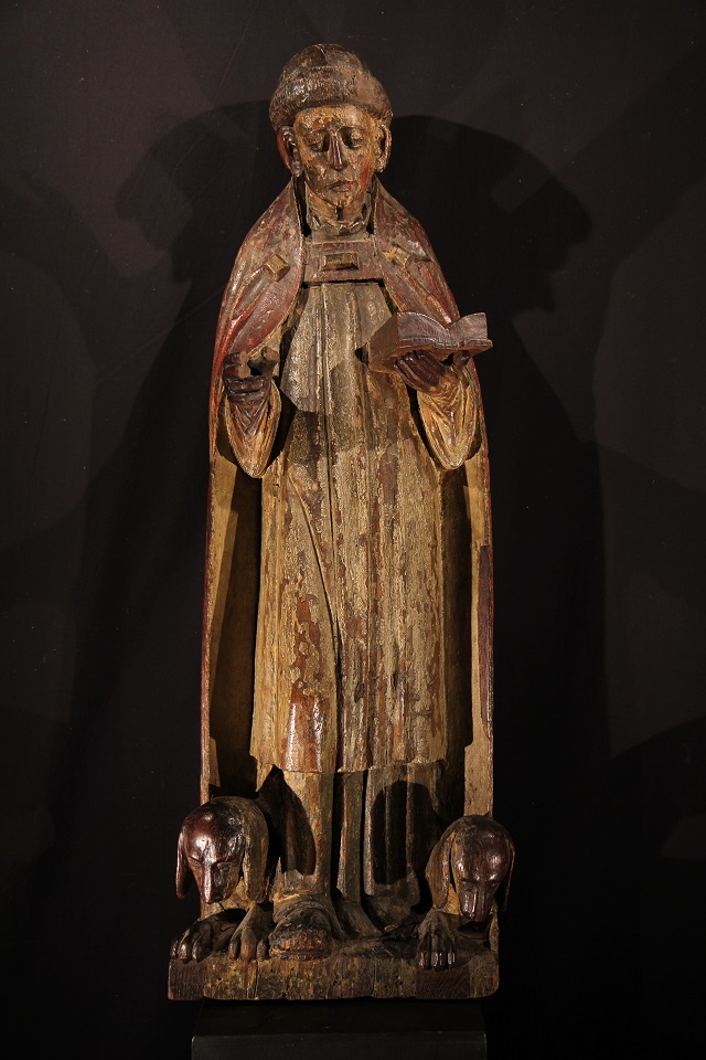 Late 16th C Statue representing Saint Dominique in carved oak wood with traces of polychromy. Sold.