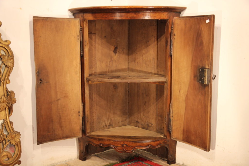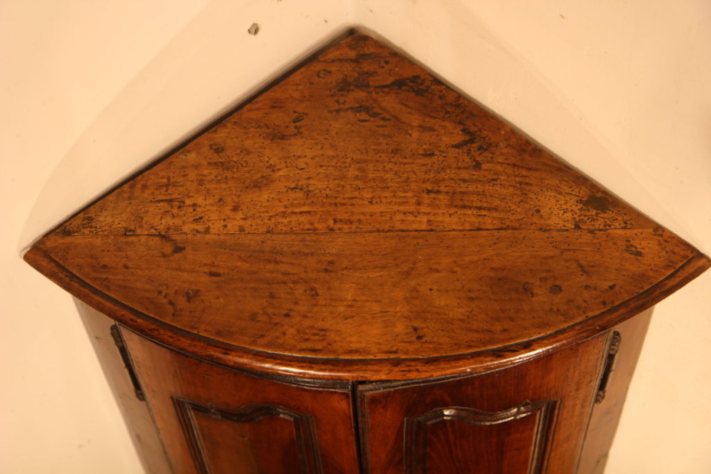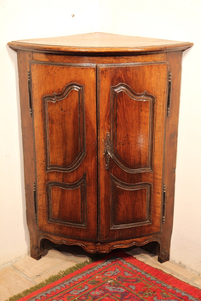 18th C small Louis XV “encoignure” (corner cupbord). In walnut wood. From Provence. Sold.