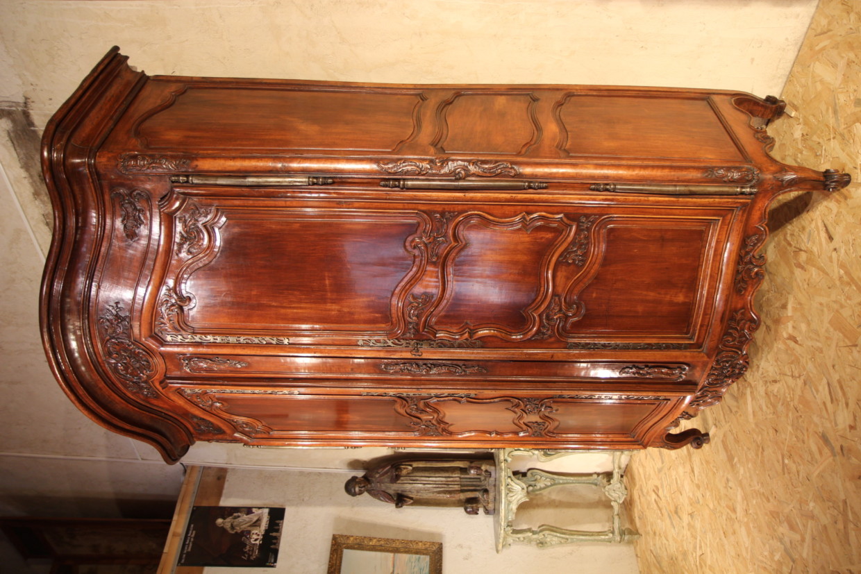 Sizeable 18th C Armoire from Arles (Provence). Rare prestigious piece of furniture with strongly curved front. In walnut wood.