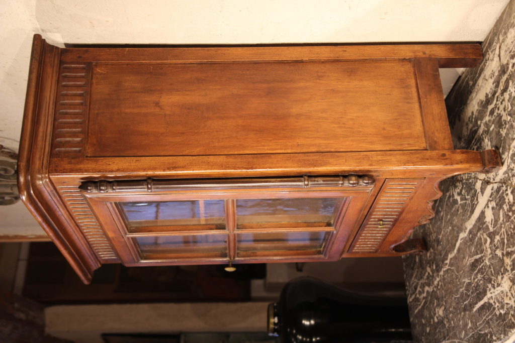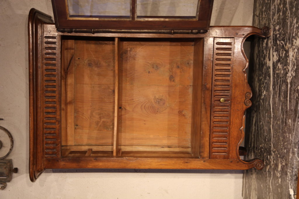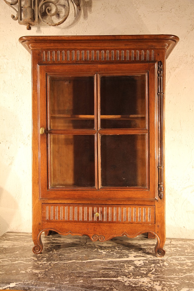 Verriau. Small display case to hang comprising a door and a drawer. Typical piece of furniture in Provence, in walnut wood . In the Louis XVI style with its flutes, it dates from early 19th C.
