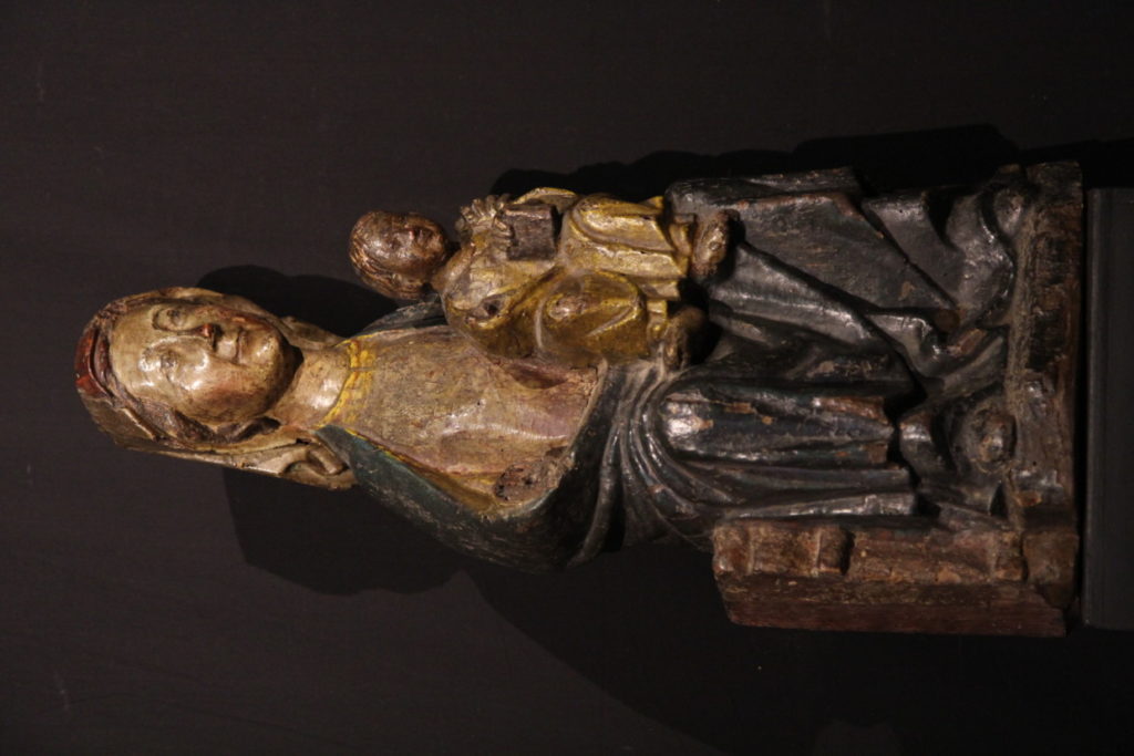 Virgin and Child with Saint Anne. Netherlands or Northen Germany. End of XV°. In oak wood. Sold.