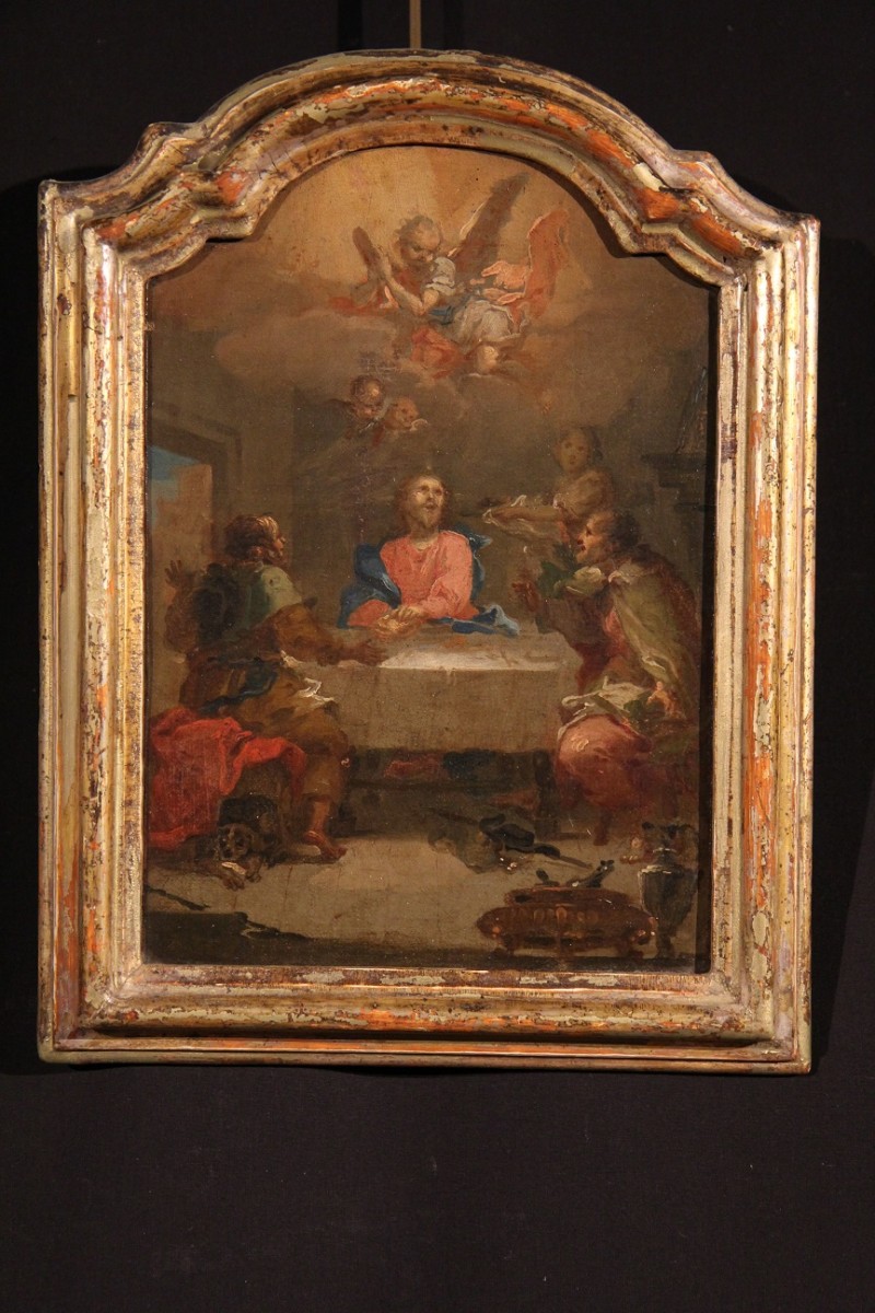 17th-century Italian school. Rosa de Tivoli’s workshop. Carved and gilded wooden frame .