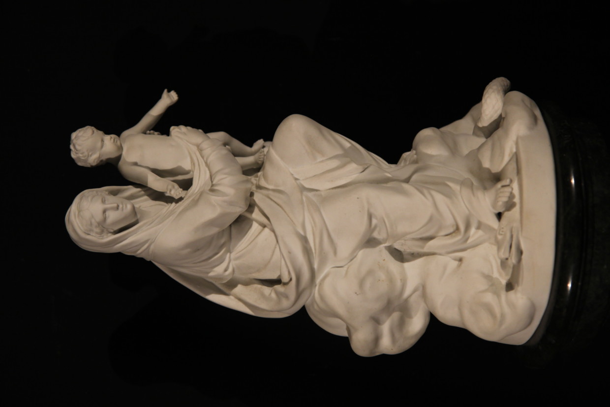 Oil on panel. The Holy Family. Late 18th century French school. Small private devotional painting depicting the Virgin at the soup, an intimate scene emphasizing the human aspect of the nursing mother and her child. Joseph, holding cherries in his hand evokes the symbol of the Eucharistic sacrifice. This balance between the sacred and the profane allowed the owner to identify with the figures and meditate on religion.