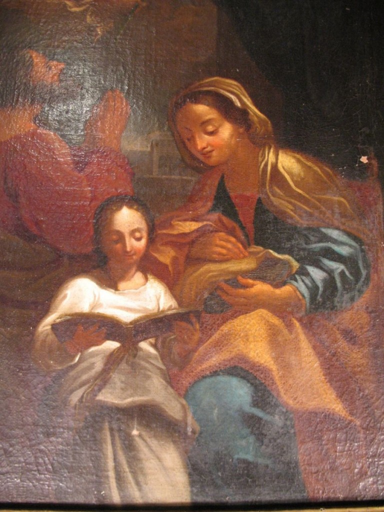 17th C French School. The education of the Virgin. Posted on 30 December 2015 at 9 h 59 min by Anne Morlon / / 0 Oil on Canvas 17th C French School. « The education of the Virgin ». Oil on Canvas 17th C French School. « The education of the Virgin ». Period gilt wood frame. Details Period: 17th C Overall Dimensions 39″ x 33,1″ Price 3 800 euros