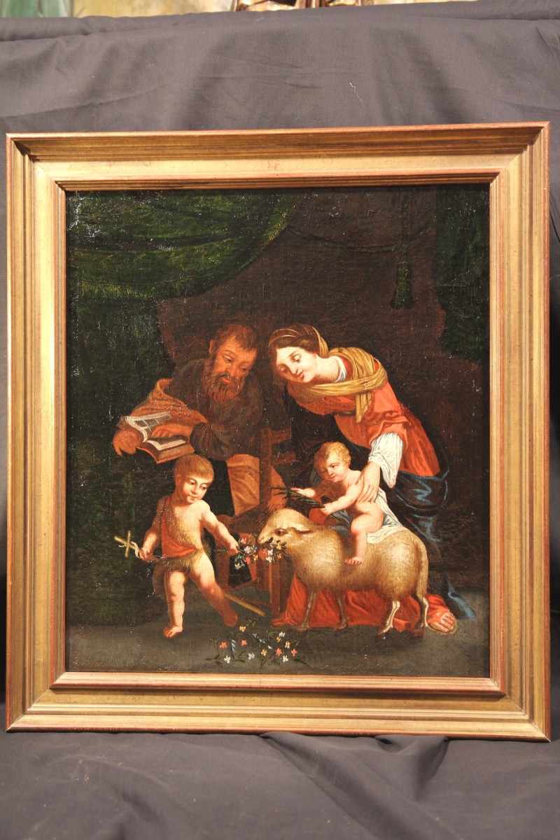 18thC Oil on canvas. “The Holy Family” . From Provence. Posted on 30 December 2015 at 10 h 20 min by Anne Morlon / / 0 18th C Oil on canvas. “The Holy Family and Little St John” . From Provence. 18th C Oil on canvas. “The Holy Family and Little St John” . From Provence. Details Period 18th C Overall Dimensions 22,4″ x 25,2″