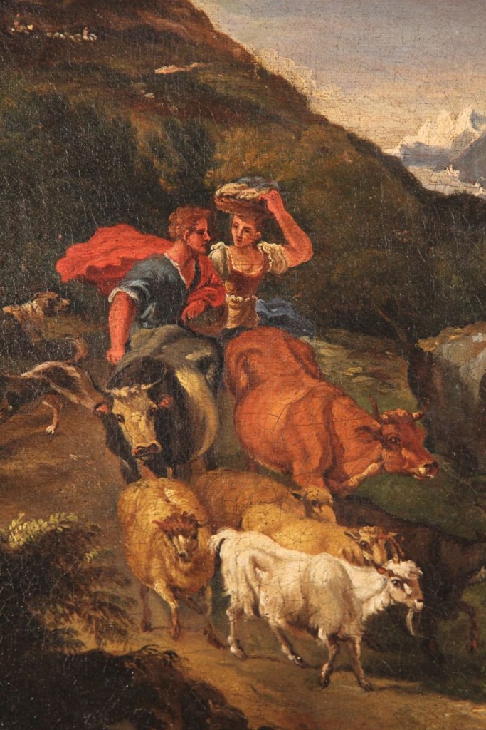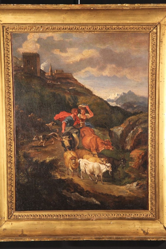 19th C French School. Couple of pastors in a landscape. Posted on 30 December 2015 at 9 h 34 min by Anne Morlon / / 0 19th C French School. Couple of pastors in a landscape. Oil on Canvas. 19th C French School. Couple of pastors in a mountainous landscape. Period frame in gilt wood. Details Period: Early 19th C Overall Dimensions 28,7″ x 23,6″ Price 1 100 euros