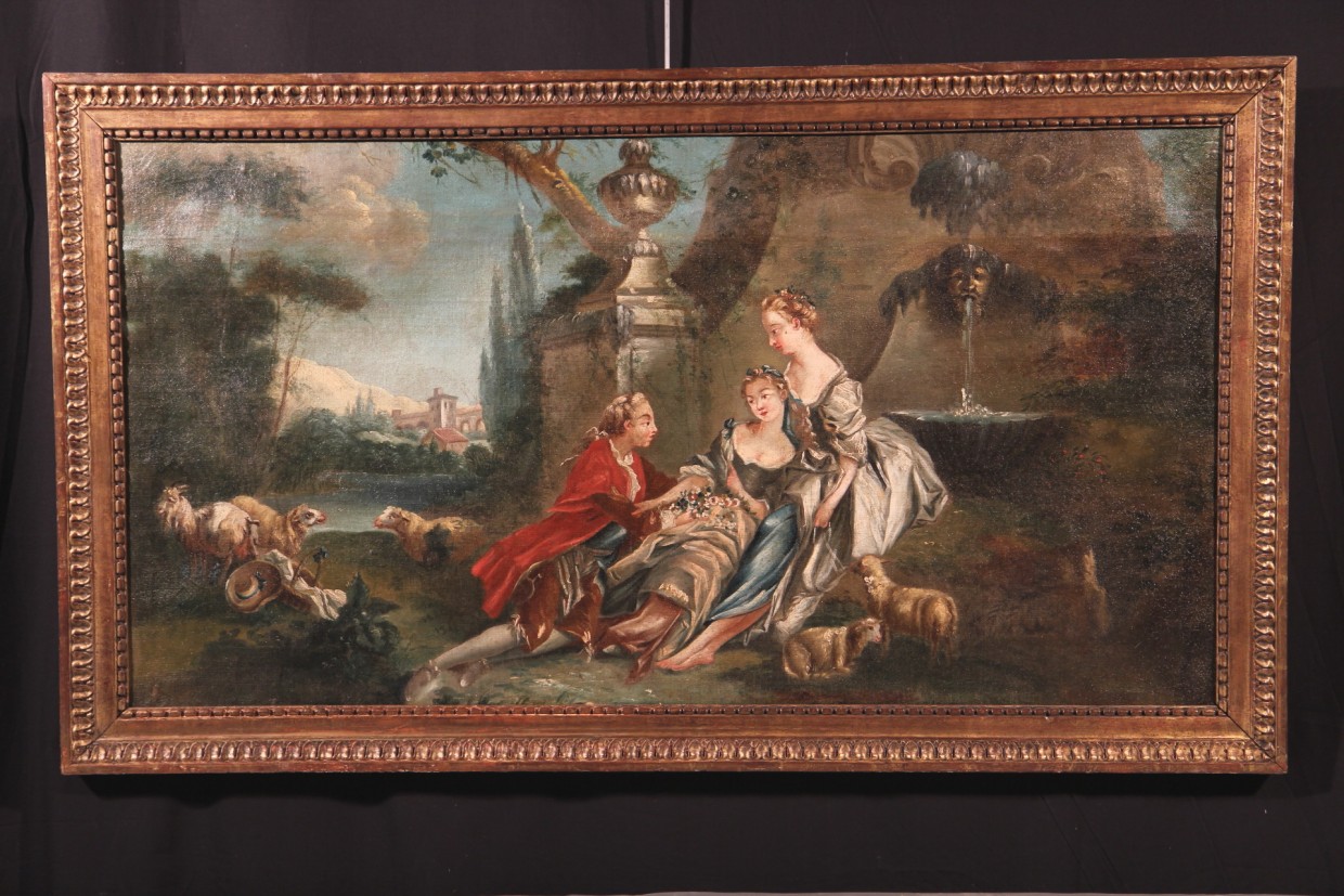 Oil on Canvas 18th C French School . Galant Scene. Sold. Posted on 30 December 2015 at 9 h 54 min by Anne Morlon / / 0 Oil on Canvas 18th C French School . Galant Scene. Sold. Oil on Canvas 18th C French School . « Galant Scene near the fountain » Details Period 18th C Overall Dimensions 41,3″ x 23,6″