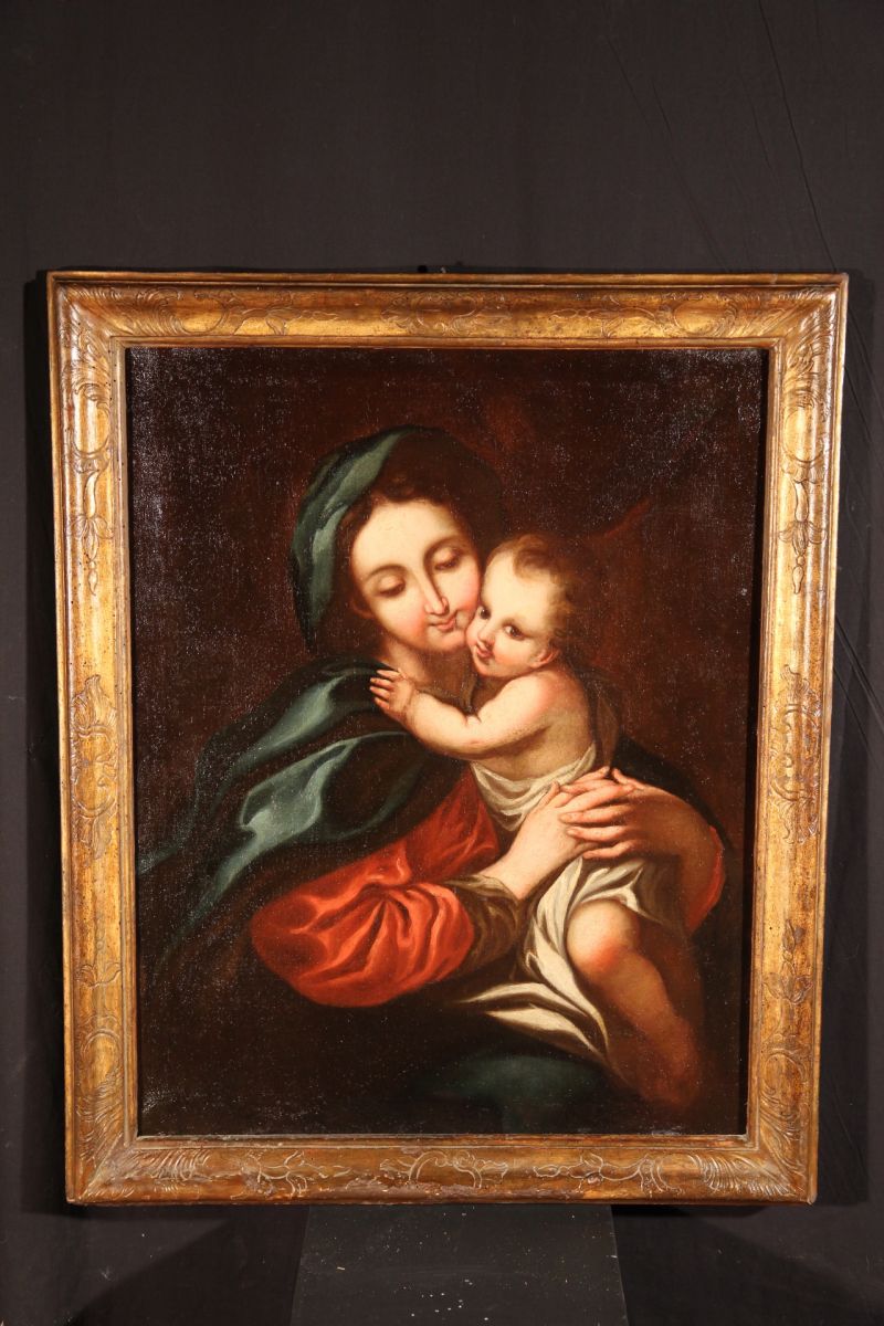 Oil on canvas. Virgin and Child. 18th C Italian School. Posted on 30 December 2015 at 10 h 39 min by Anne Morlon / / 0 Oil on canvas. Virgin and Child. 18th C Italian School. Oil on canvas. Virgin and Child. 18th C Italian School on its original canvas and its period gilt wood frame. Details Period: 18th C Overall Dimensions 36,6 ” x 29,9 “ Canvas Dimensions 31,5 “x 24,8 “ Price 2 500 euros