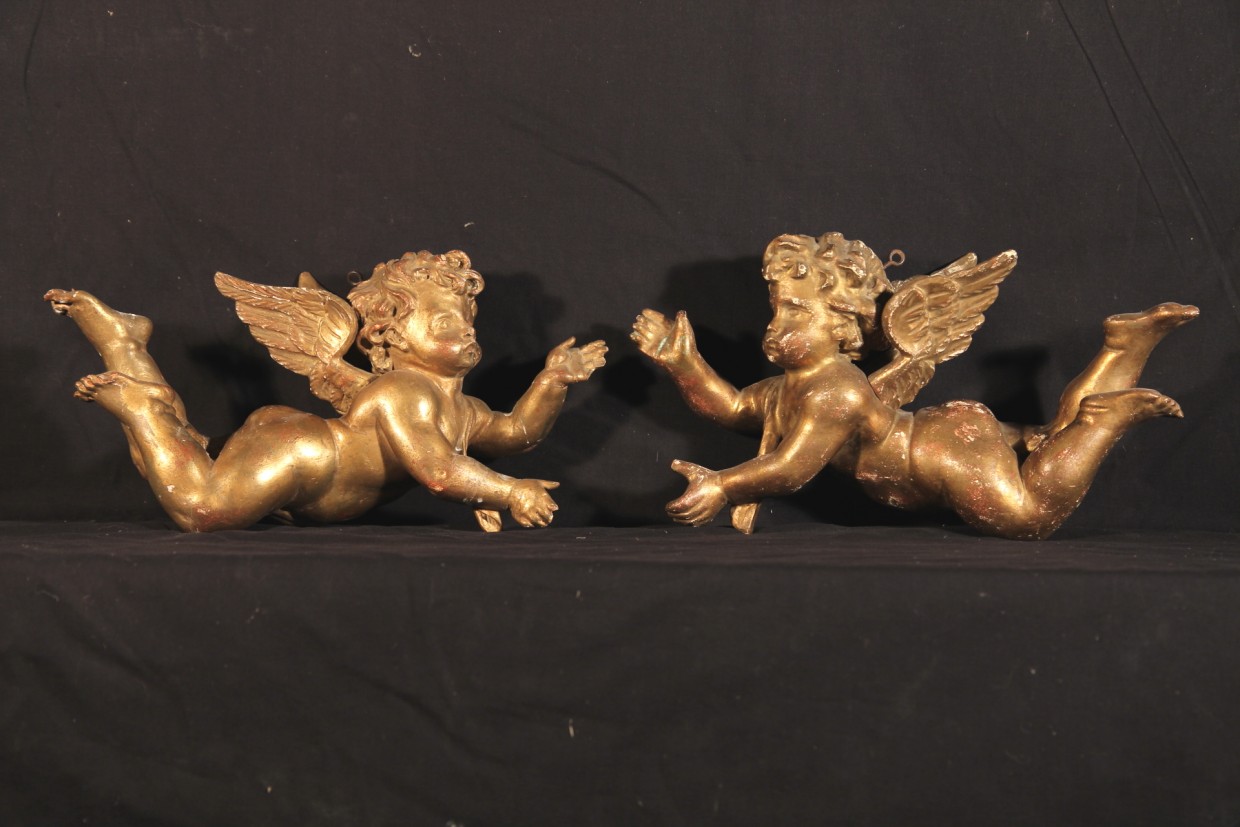 17thC small baroque altarpiece. In carved, gilt and polychrome wood. From Provence.
