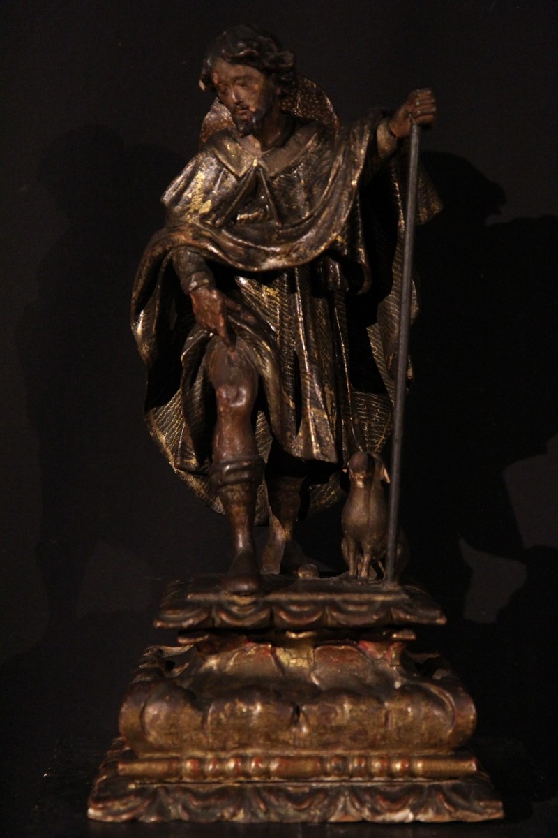 St Roch. Statue en bois doré et polychrome. Espagne époque XVII°. Vendu.