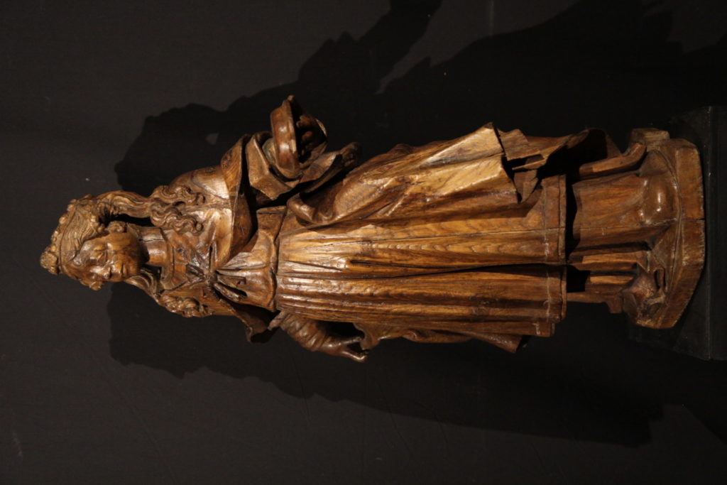 Statue de sainte sculptée dans du bois de chêne (probablement Sainte Hélène). Travail Rhénan circa 1600.